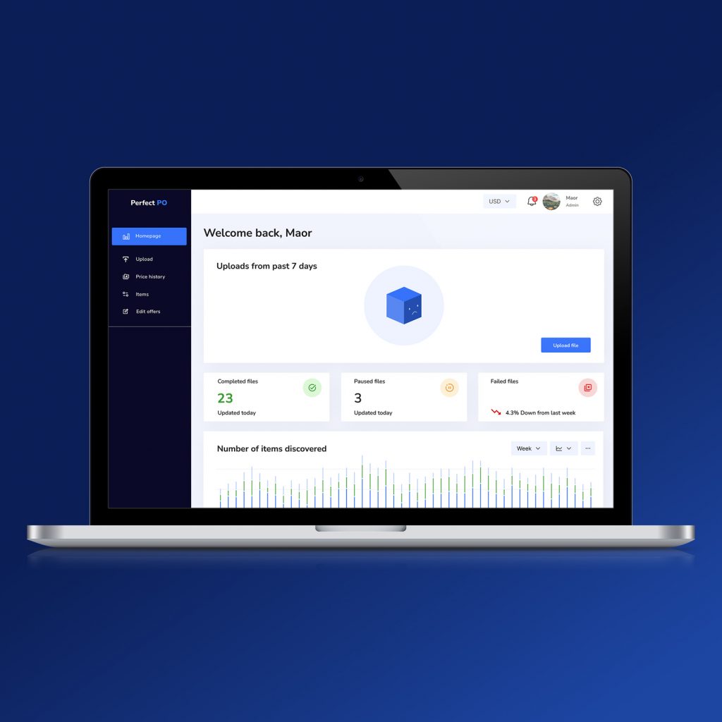 This project was created for a client working in the reselling industry who needed a specialized tool to simplify product research and bulk listing workflows. The goal was to design a dashboard that makes it easier to search items, analyze pricing data, and generate structured Excel files ready for export. The dashboard highlights key metrics such as processed files, failed uploads, and discovered items, helping users quickly understand their workflow status. Special attention was given to simplifying repetitive tasks like data upload, item discovery, and exporting information into spreadsheets.