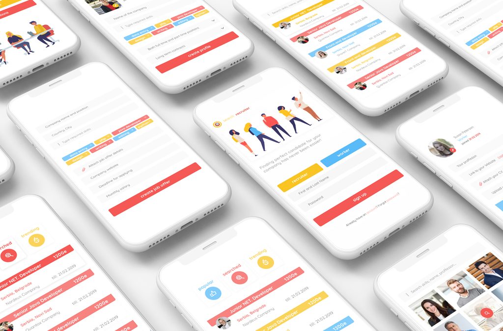 This early concept explored a mobile app for job searching and hiring, focused on simplifying how candidates and recruiters connect. The interface was designed to make browsing roles, filtering listings, and creating profiles quick and intuitive, with a clear visual hierarchy and lightweight onboarding flow.