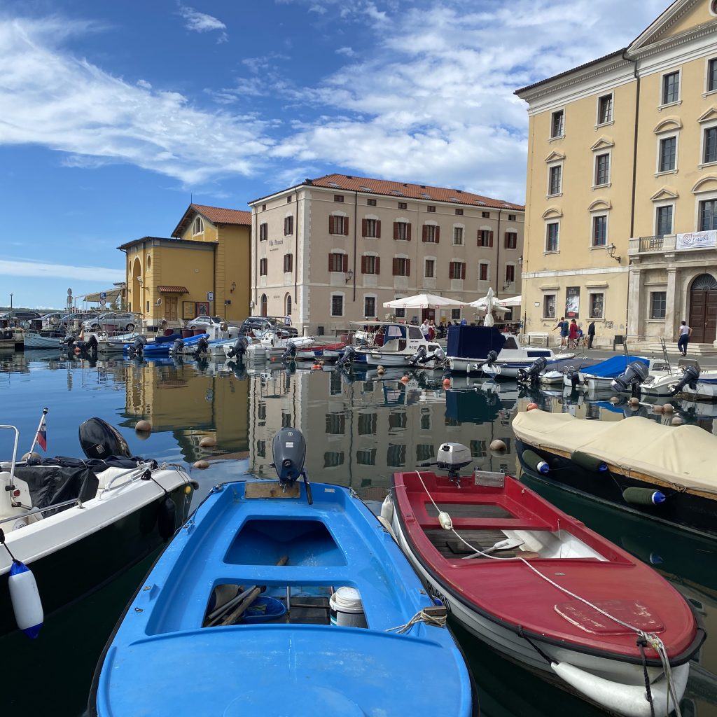 Colorful boats resting in the harbor of Piran, where gentle reflections, softened light, and subtle movement come together to reveal the quiet Mediterranean charm and unhurried atmosphere of this coastal town.