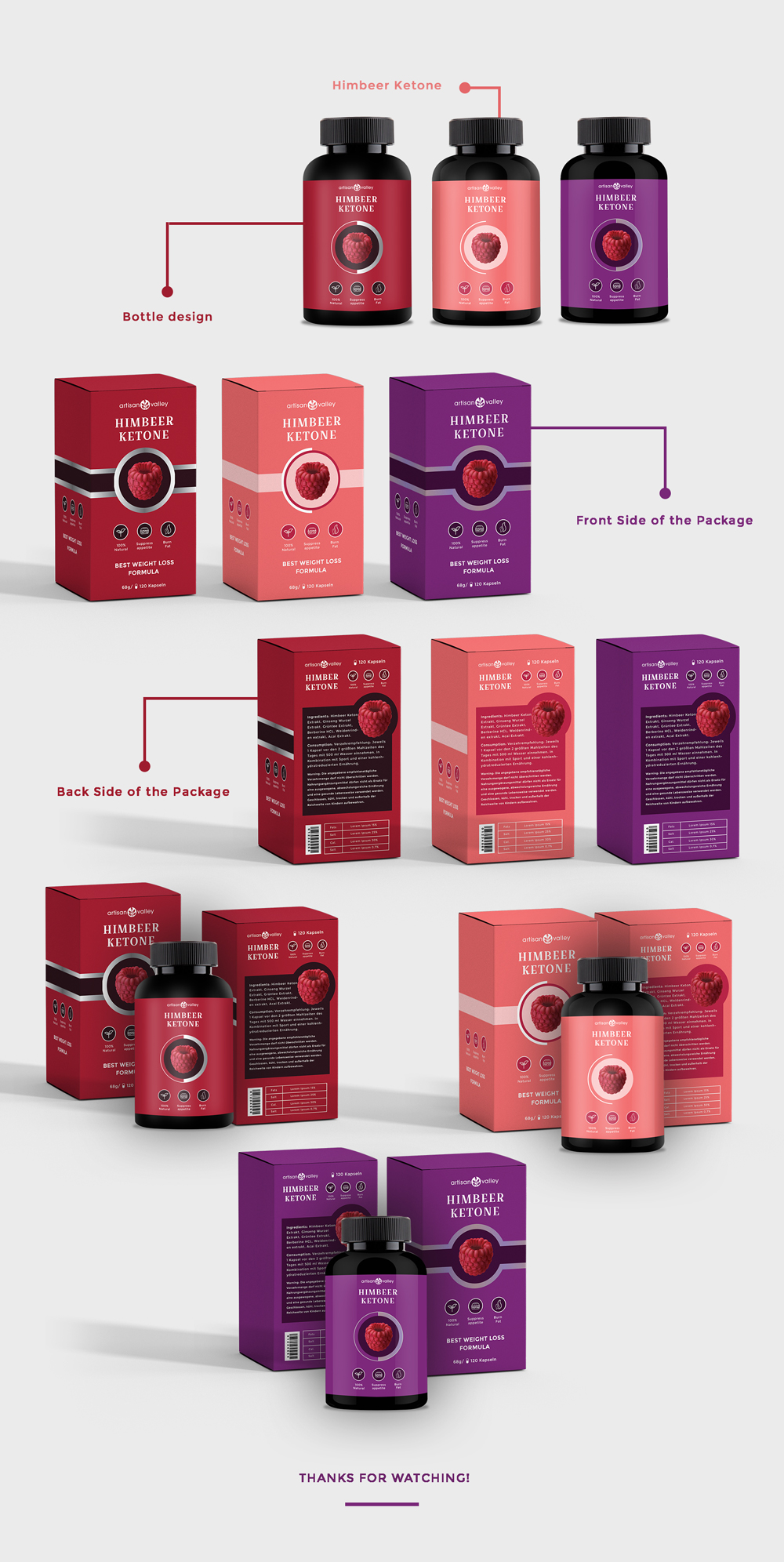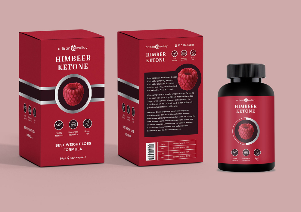 Beauty product design concept for Himbeer Ketone.