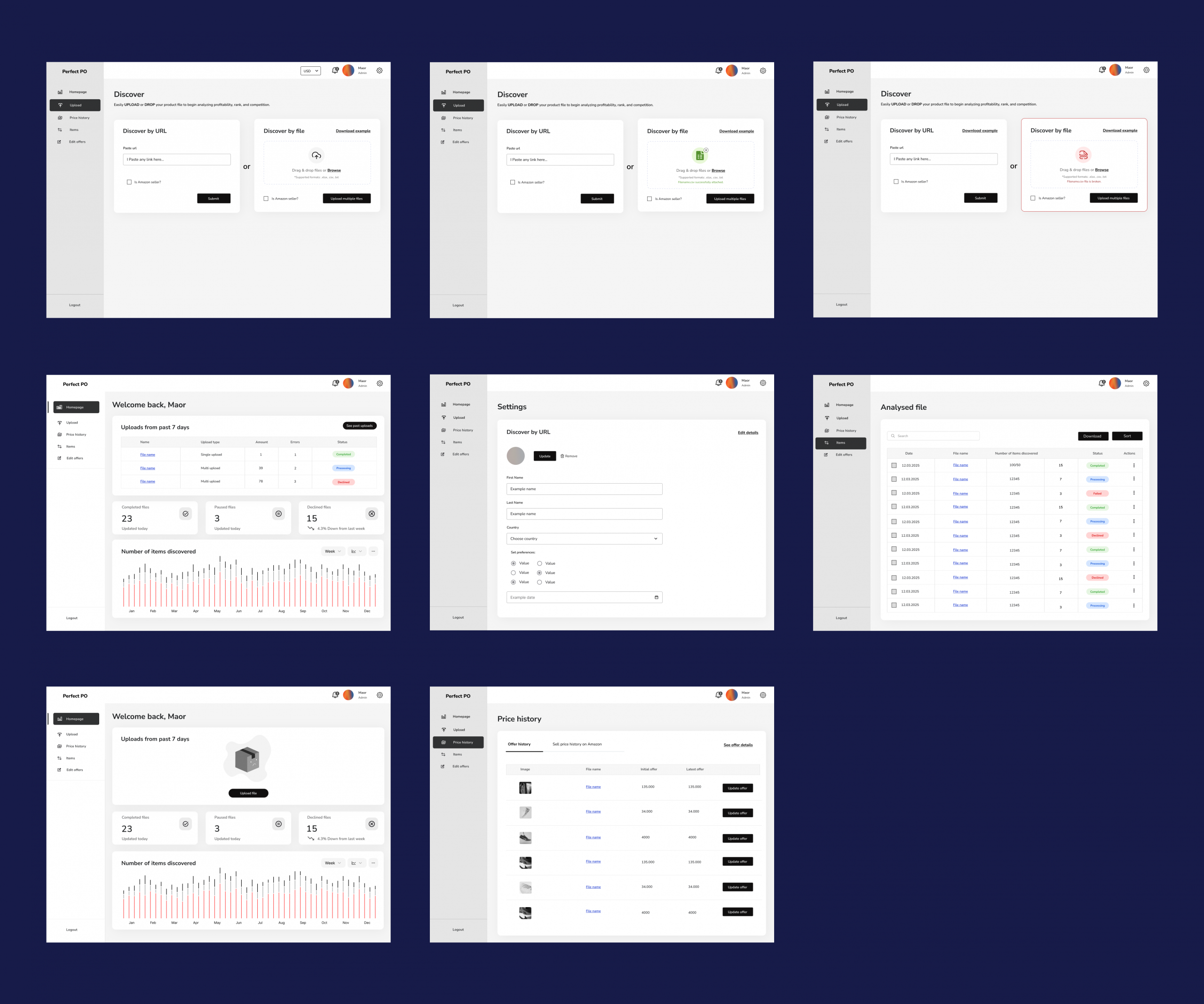 This project was created for a client working in the reselling industry who needed a specialized tool to simplify product research and bulk listing workflows. The goal was to design a dashboard that makes it easier to search items, analyze pricing data, and generate structured Excel files ready for export.